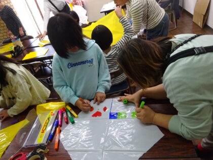 まず凧にみんなの好きな絵を描きます。