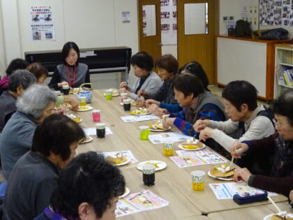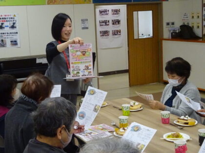12月25日(木) 今年最後のこみカフェが開催され、土江保健師さんによる「ベジチェック」を行いました。 測定機に手のひらをかざすだけで、野菜の摂取状況が測定できます。