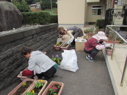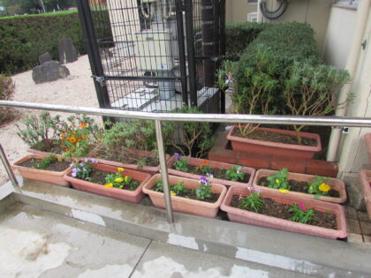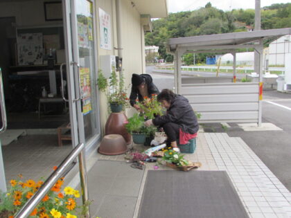 10月21日(火) 三ノ谷サロンのみなさんがコミセン玄関に秋の花の植栽をして下さいました。