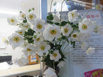 受付の花瓶用には、新宮さんがシュウメイギクの切り花を飾ってくれました。