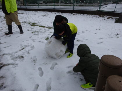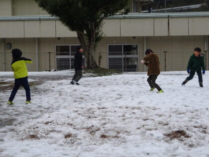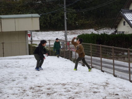 12月26日(金) 今朝は雪が積もりました。 そして今日から冬休み「伊野っ子預り」のスタート。 子どもたちは文字通り寒波なんかどこ吹く風。 早速児童館の庭で雪合戦です。