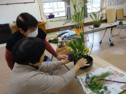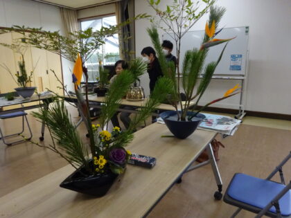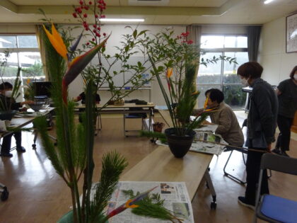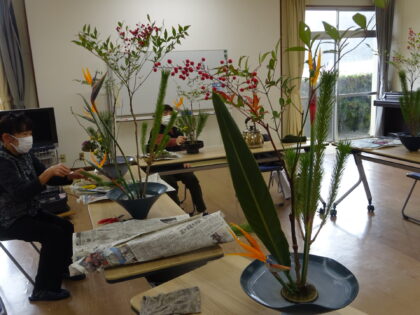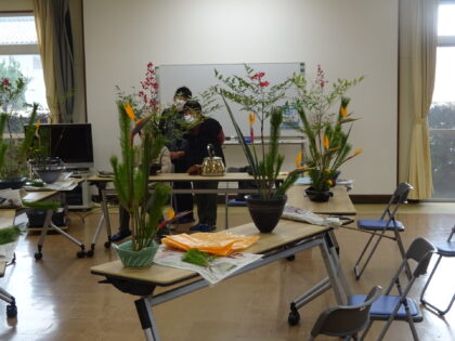 毎年 歳末の生け花教室は、お正月用の作品づくりです。