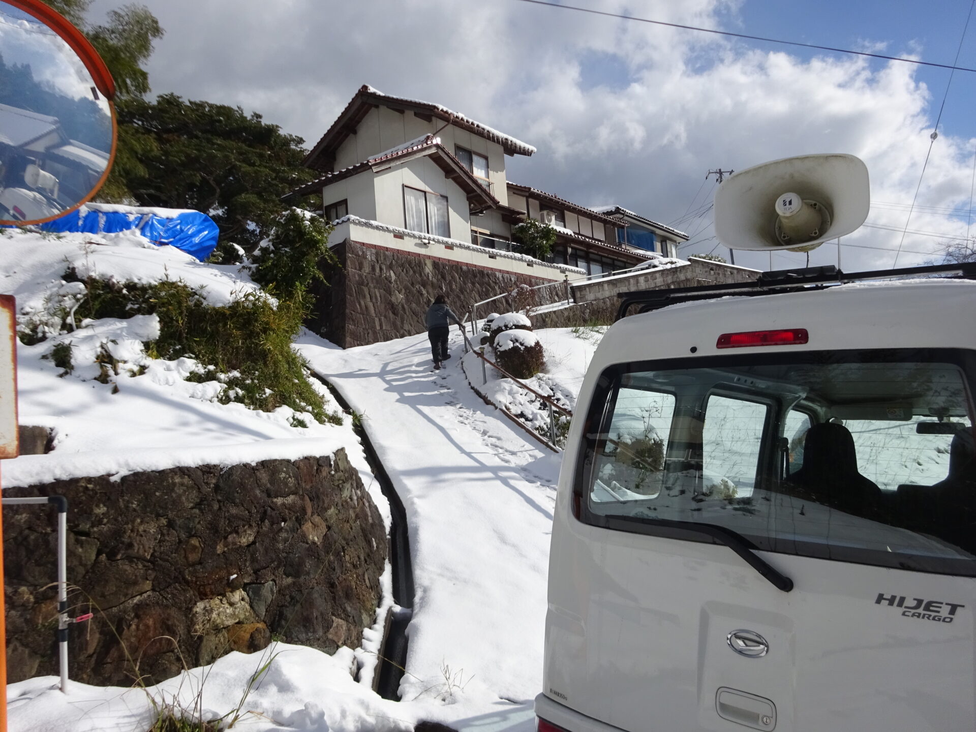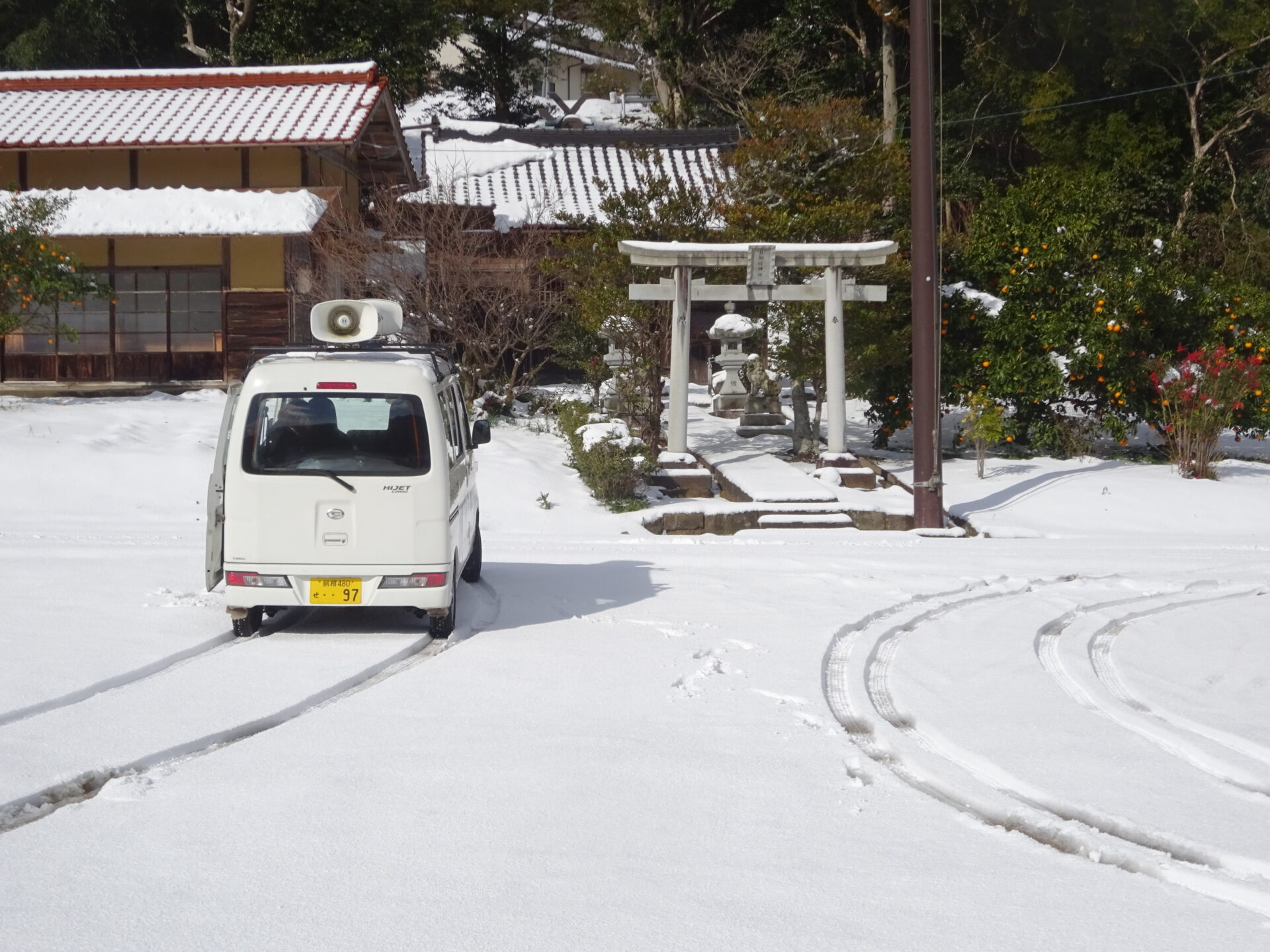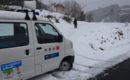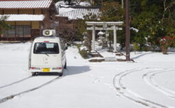 今日は雪が積もりました。 雪の中を配達決行です。